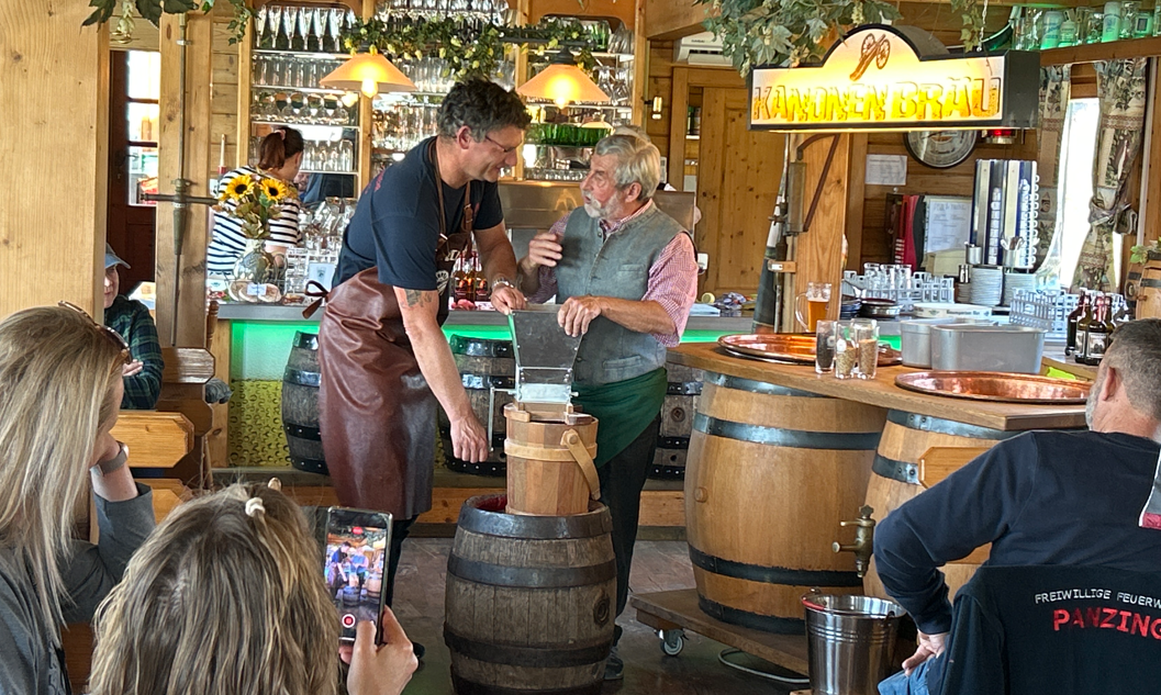 Auf dem Busparkplatz der Innlände teilte sich die Reisegesellschaft in zwei Gruppen für die ausführliche Stadtführung, wo die Feuerwehrler bei einem Stadtrundgang allerlei Wissenswertes über die Architektur, die Kultur und die bewegte Geschichte der Stadt erfuhren. Die Stadführerinnen veranschaulichten anhand der Hochwassermarken die katastrophalen Inn-Hochwässer, von denen die Schärdinger regelmässig heimgesucht werden. Nachmittags ging es dann auf das Brauereischiff, der Braumeister des "Kanonenbräu" erläuterte in Wort und Tat den Brauvorgang bevor das deftige Mittagessen in dem gemütlichen Bordrestaurant eingenommen wurde. Eine Innschifffahrt auf dem Brauereischiff, vorbei an der Vogel-, der Biberinsel, durch die Inn-Enge an Vornbach vorbei nach Wernstein über Neuburg, gewendet vor dem Kraftwerk Ingling und wieder zurück nach Schärding, alles fachkundig kommentiert von unserem Kapitän Schaurecker, rundete das gelungene Ausflugsprogramm ab. Auf der Heimfahrt bedankte sich der Vorstand Tobias Laubenbacher beim Organistor Heiner Plinninger und er freue sich schon auf den nächstjährigen Ausflug.